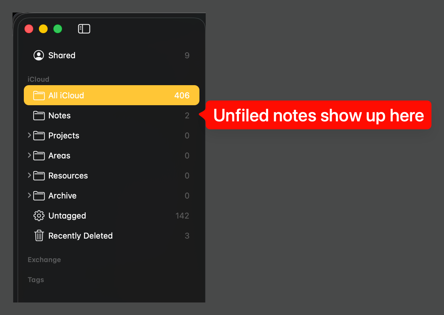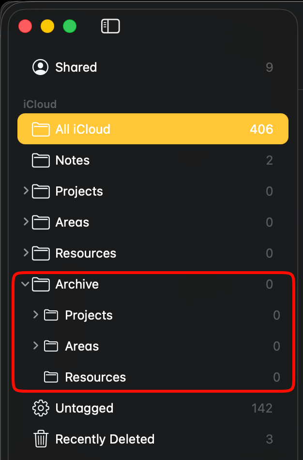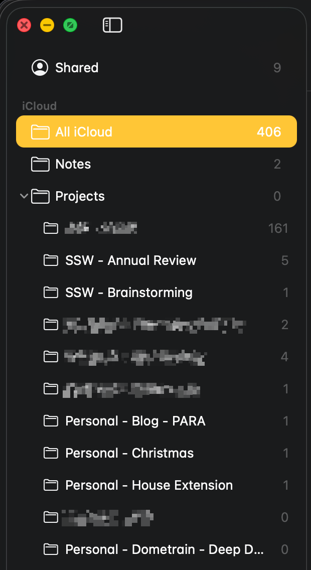 When using Apple Notes, all new notes show up in the āNotesā folder by default. I consider this my Inbox. From here, notes need to be sorted into their respective PARA folders.