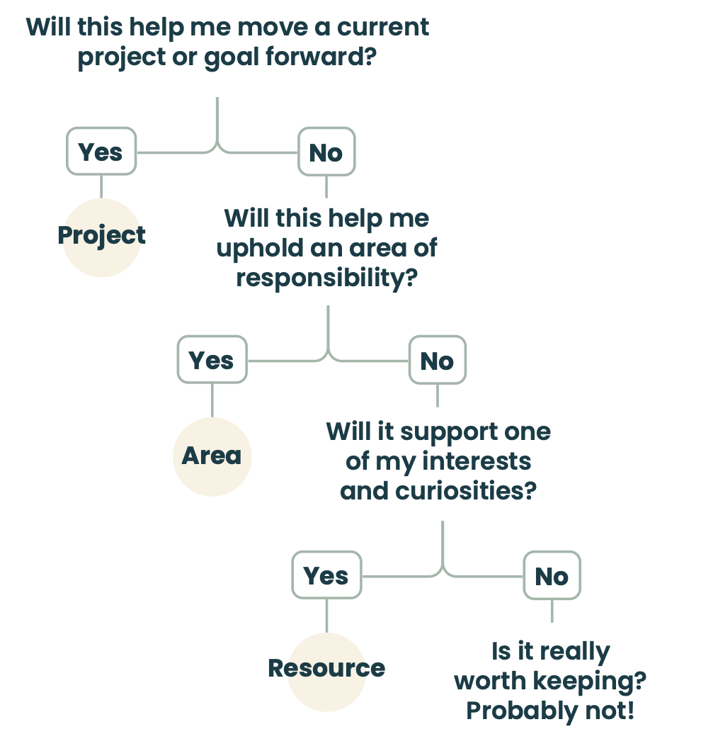These 4 categories are organised from most actionable (Projects) to least actionable (Archives). The idea is to keep your notes and files organised in a way that reflects your current priorities and responsibilities.